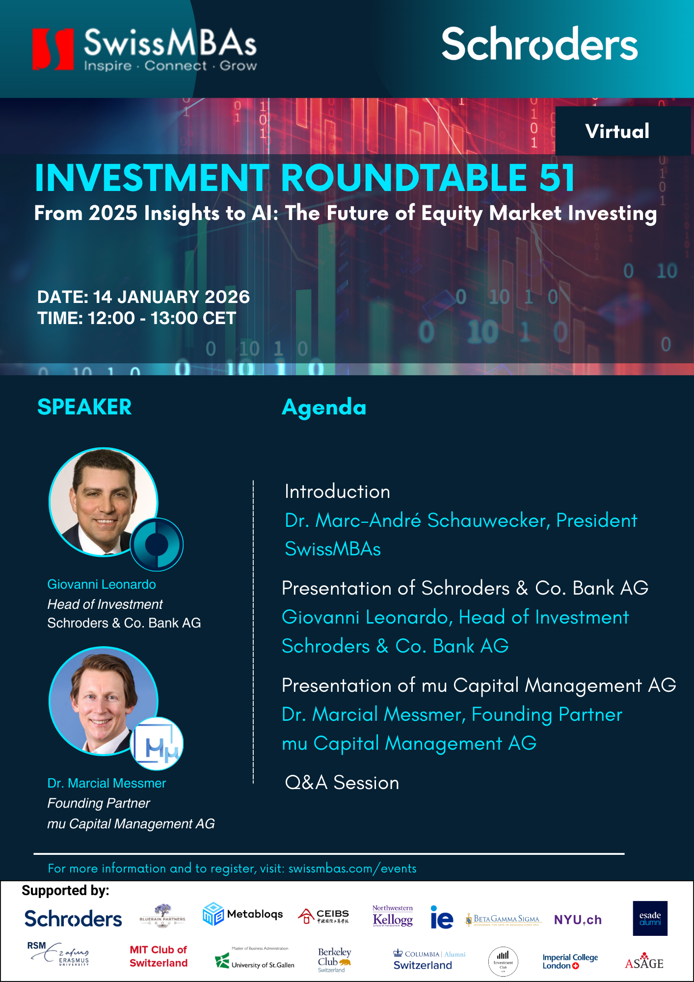 "By attending this event, you consent to being photographed or recorded for promotional and documentation purposes. If you do not wish to appear in our media, please notify us in advance or at the event. For questions or to withdraw consent, contact info@swissmbas.com. For more details about how we treat your data, please see our data protection policy (here https://swissmbas.com/page/privacy-policy)."