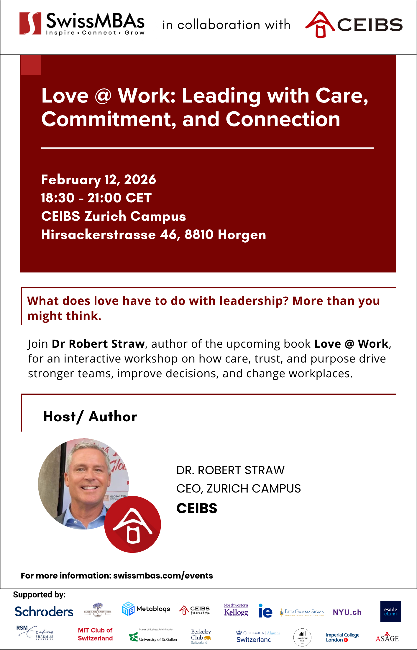 "By attending this event, you consent to being photographed or recorded for promotional and documentation purposes. If you do not wish to appear in our media, please notify us in advance or at the event. For questions or to withdraw consent, contact info@swissmbas.com. For more details about how we treat your data, please see our data protection policy (here https://swissmbas.com/page/privacy-policy)."