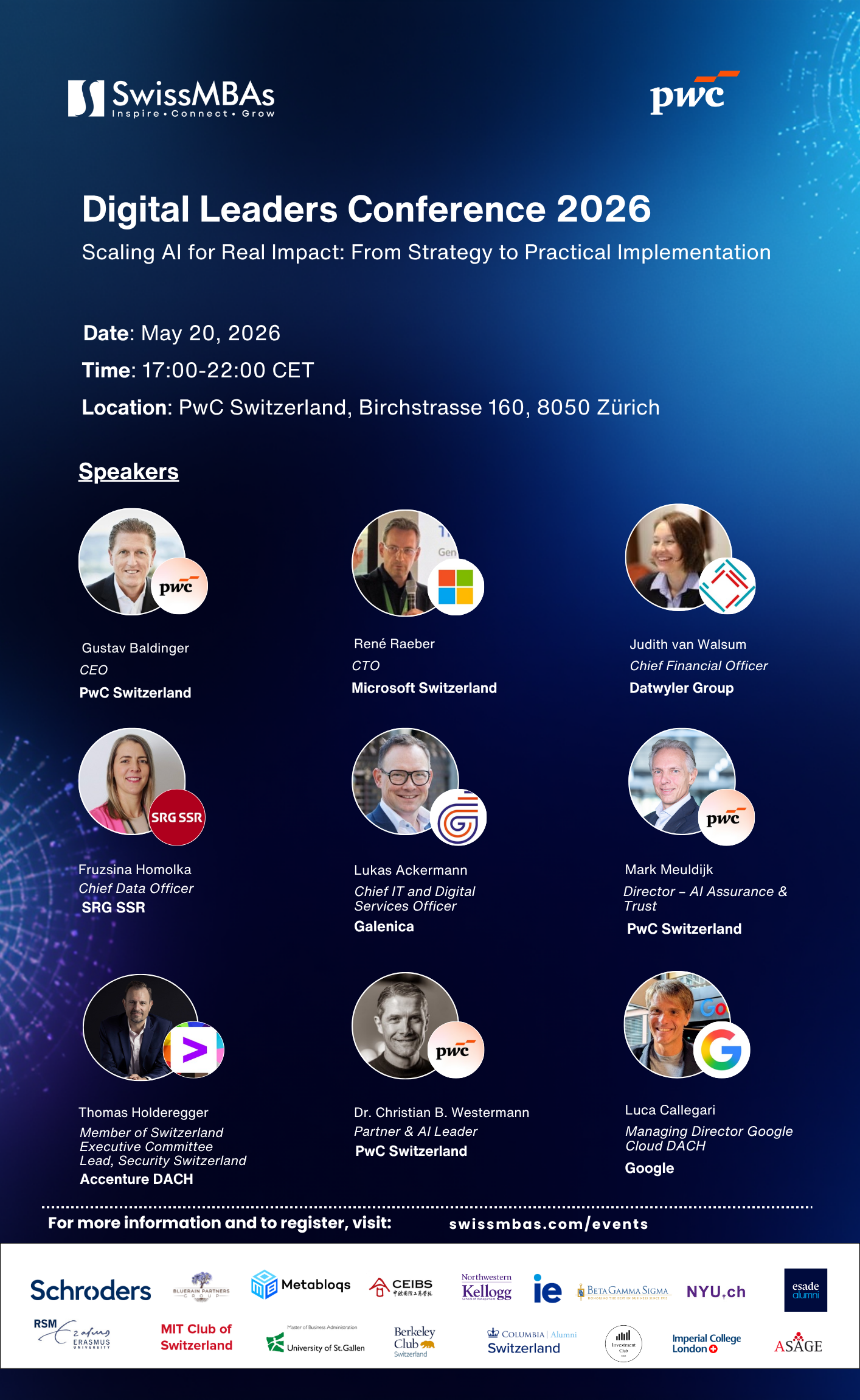 "By attending this event, you consent to being photographed or recorded for promotional and documentation purposes. If you do not wish to appear in our media, please notify us in advance or at the event. For questions or to withdraw consent, contact info@swissmbas.com. For more details about how we treat your data, please see our data protection policy (here https://swissmbas.com/page/privacy-policy)."