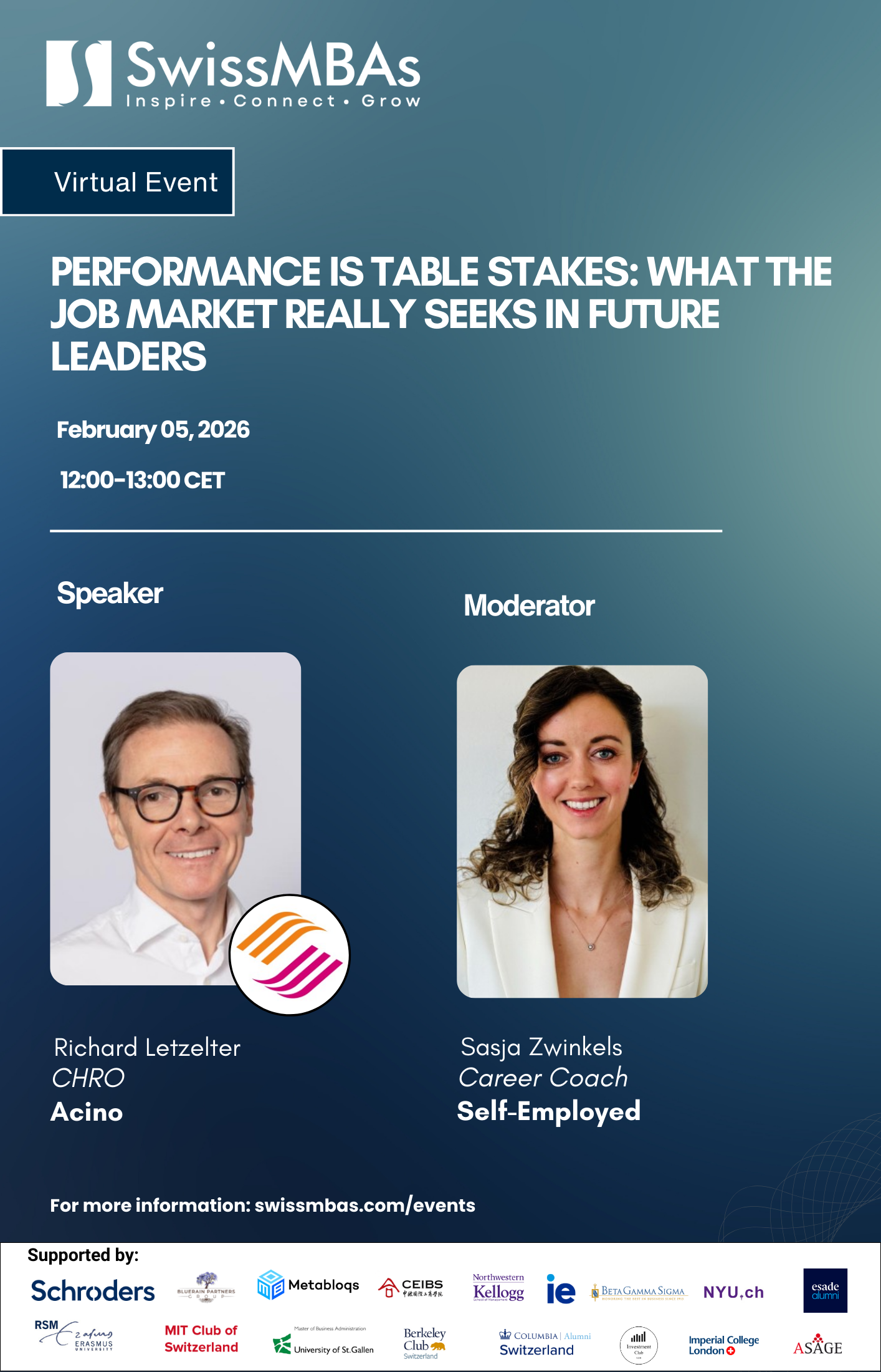 "By attending this event, you consent to being photographed or recorded for promotional and documentation purposes. If you do not wish to appear in our media, please notify us in advance or at the event. For questions or to withdraw consent, contact info@swissmbas.com. For more details about how we treat your data, please see our data protection policy (here https://swissmbas.com/page/privacy-policy)."