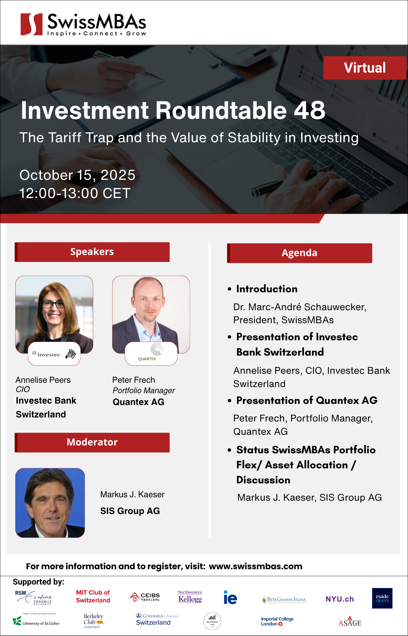 "By attending this event, you consent to being photographed or recorded for promotional and documentation purposes. If you do not wish to appear in our media, please notify us in advance or at the event. For questions or to withdraw consent, contact info@swissmbas.com. For more details about how we treat your data, please see our data protection policy (here https://swissmbas.com/page/privacy-policy)."