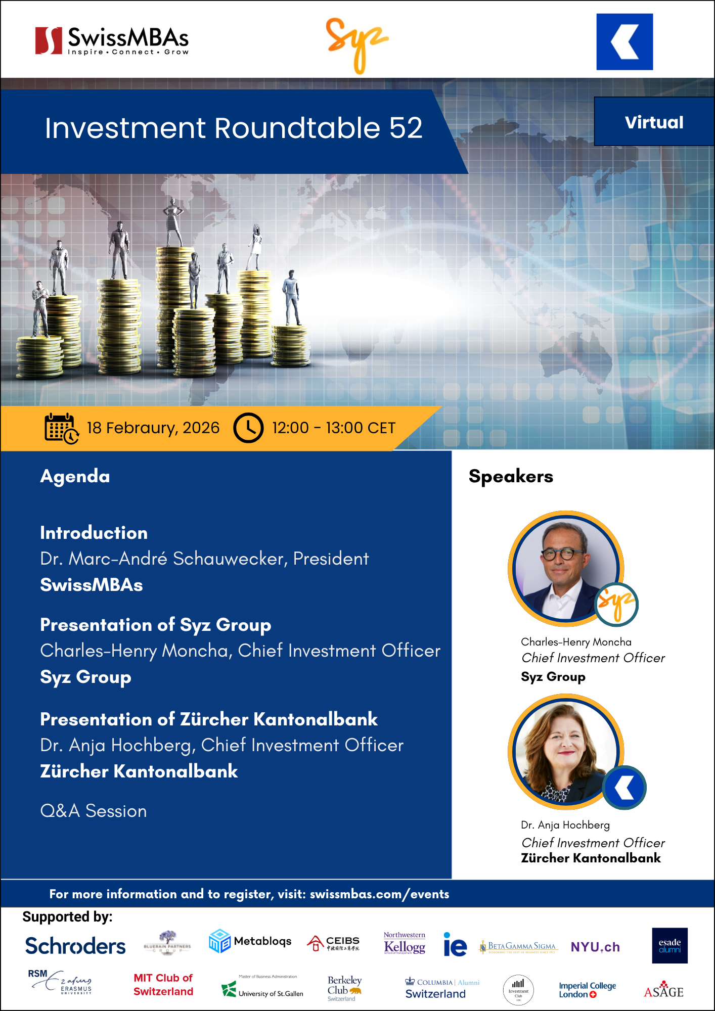 "By attending this event, you consent to being photographed or recorded for promotional and documentation purposes. If you do not wish to appear in our media, please notify us in advance or at the event. For questions or to withdraw consent, contact info@swissmbas.com. For more details about how we treat your data, please see our data protection policy (here https://swissmbas.com/page/privacy-policy)."