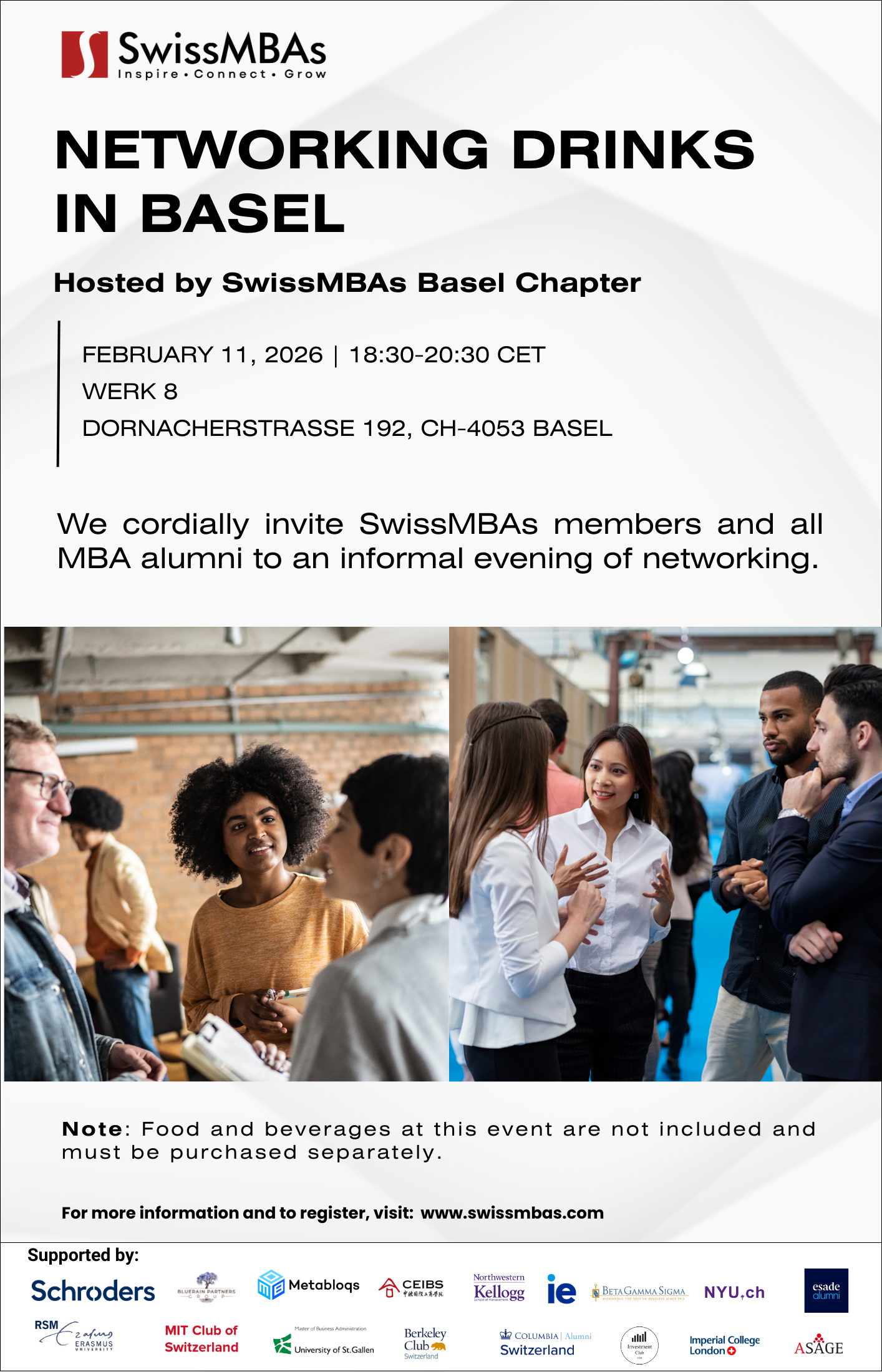"By attending this event, you consent to being photographed or recorded for promotional and documentation purposes. If you do not wish to appear in our media, please notify us in advance or at the event. For questions or to withdraw consent, contact info@swissmbas.com. For more details about how we treat your data, please see our data protection policy (here https://swissmbas.com/page/privacy-policy)."