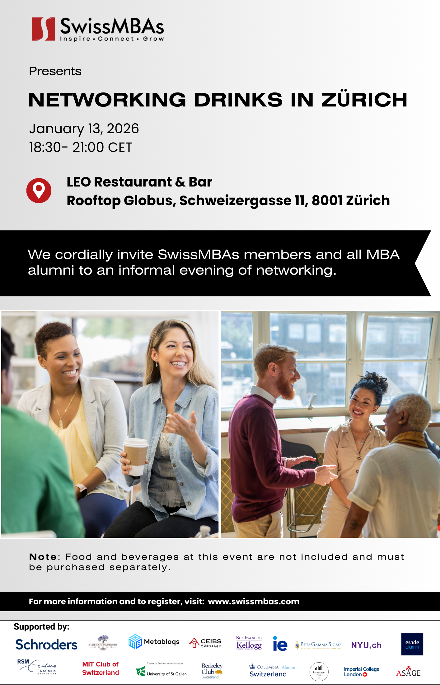 "By attending this event, you consent to being photographed or recorded for promotional and documentation purposes. If you do not wish to appear in our media, please notify us in advance or at the event. For questions or to withdraw consent, contact [email protected]. For more details about how we treat your data, please see our data protection policy (here https://swissmbas.com/page/privacy-policy)."