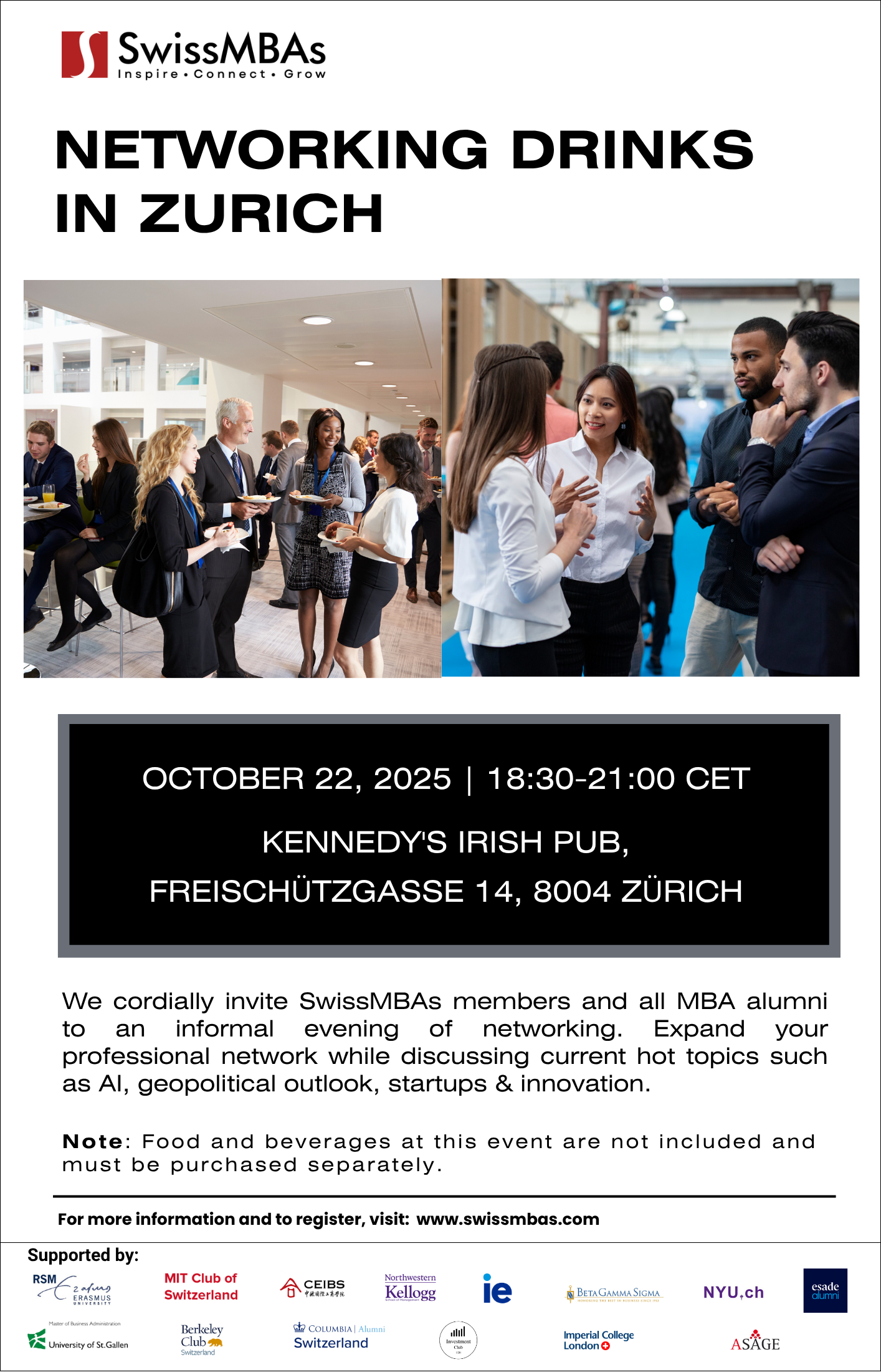 "By attending this event, you consent to being photographed or recorded for promotional and documentation purposes. If you do not wish to appear in our media, please notify us in advance or at the event. For questions or to withdraw consent, contact info@swissmbas.com. For more details about how we treat your data, please see our data protection policy (here https://swissmbas.com/page/privacy-policy)."