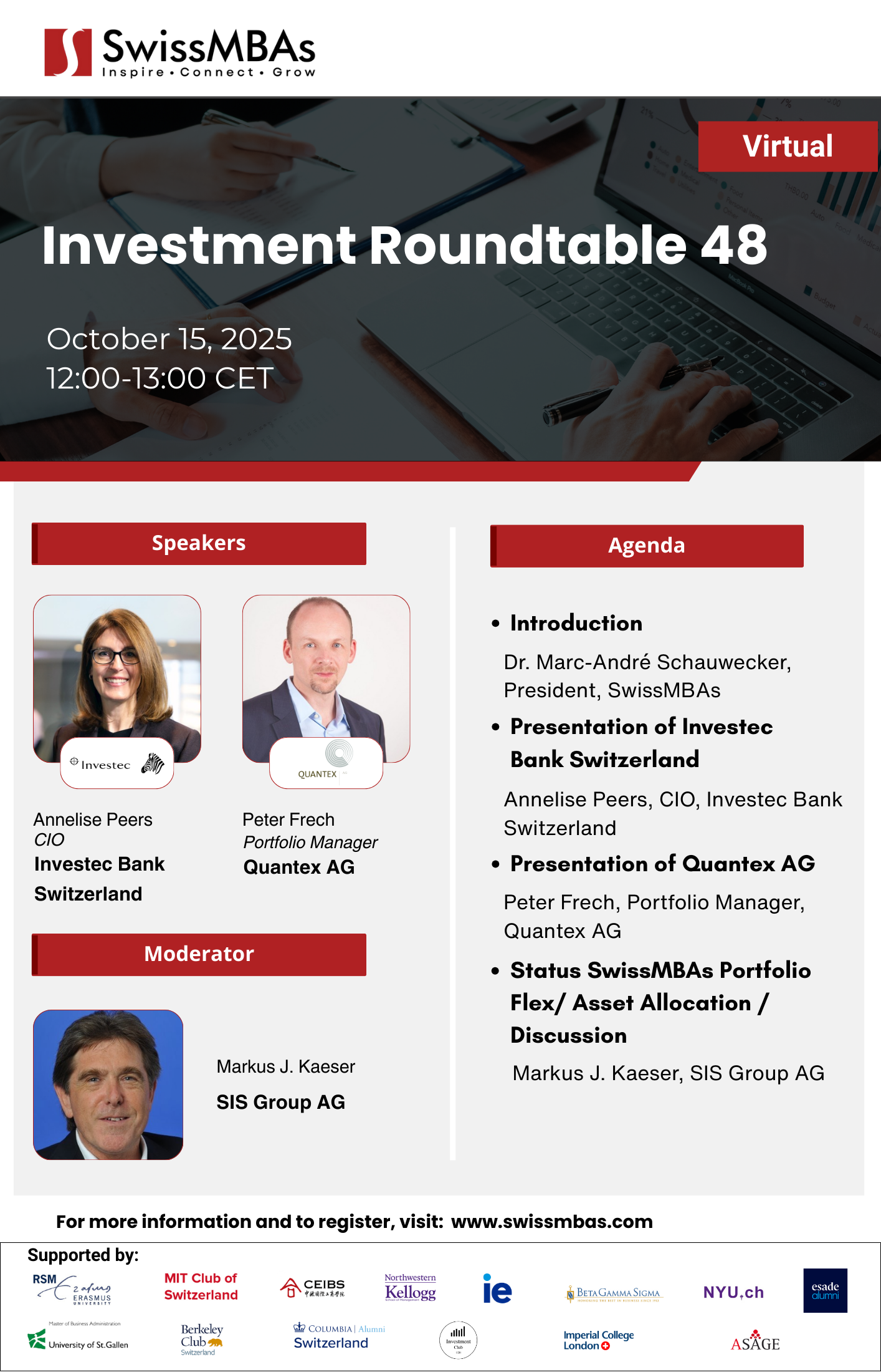 "By attending this event, you consent to being photographed or recorded for promotional and documentation purposes. If you do not wish to appear in our media, please notify us in advance or at the event. For questions or to withdraw consent, contact [email protected]. For more details about how we treat your data, please see our data protection policy (here https://swissmbas.com/page/privacy-policy)."