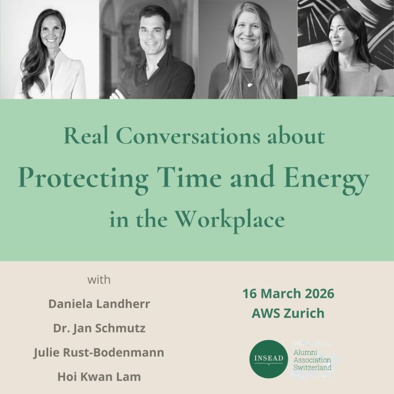 Join INSEAD Women in Business Zurich for an evening of honest, interactive conversation on boundaries, pressure and sustainable leadership, hosted at AWS Zurich. We’ll start with a few short personal stories in an interactive panel format, weave in simple reflective activities, and then open up to informal networking over an apéro.
